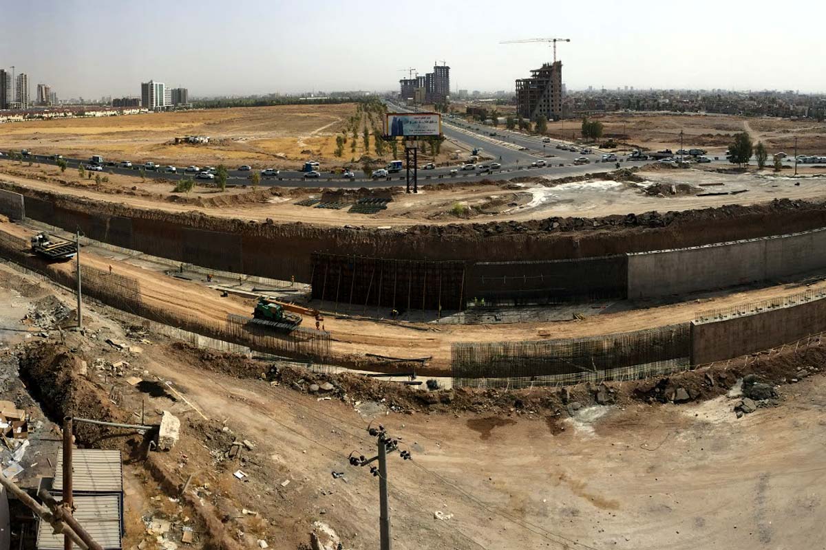 Niayesh highway in Tehran. Connecting Tehran from East to West by Five and a half kilometers of a 6-lane highway including 3 million cubic meters of excavation, and 300 thousand cubic meters of concrete walls.